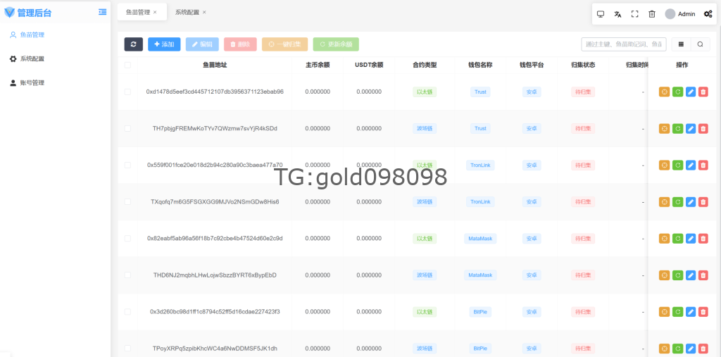 ✔️ 💰 一键归集 —— 自动收集用户资产,汇总至您的主控地址